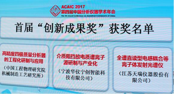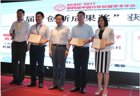 2017年8月10日,由中國儀器儀表學會分析儀器分會、長三角科學儀器產業技術創新戰略聯盟主辦的第四屆中國分析儀器學術年會(ACAIC 2017)在南京成功召開。當晚,主辦方舉行了隆重的首屆“分析儀器創新獎”頒獎典禮,華儀寧創“介質阻擋放電質譜離子源”成為最終獲獎的三個創新成果之一。南京大學教授、中國質譜學會理事長陳洪淵院士為獲獎成果頒發了獲獎證書。