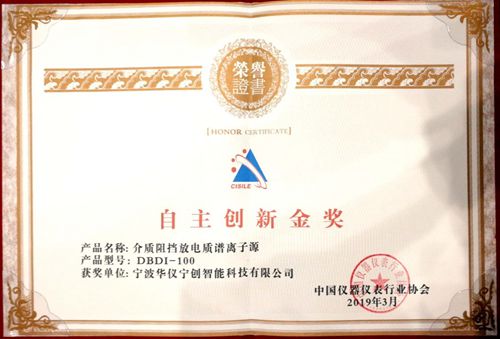 2019年3月27日-29日,由中國儀器儀表行業協會主辦的第十七屆中國國際科學儀器及實驗室裝備展覽會(CISILE 2019)在北京國家會議中心舉行。在同期舉行的“CISILE 2019年度自主創新獎頒獎儀式”上,華儀寧創介質阻擋放電質譜離子源產品榮獲中國儀器儀表行業協會自主創新金獎。