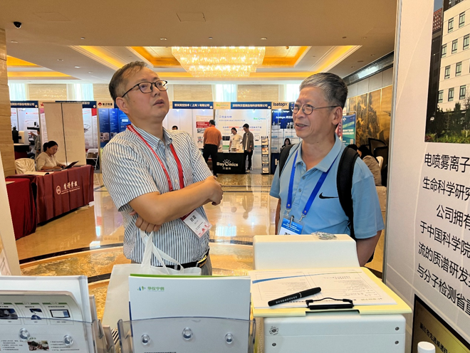 會議現場,華儀寧創展出了便攜式直接電離質譜儀CRAIV-110、單細胞質譜儀SinCell-100、介質阻擋放電質譜離子源DBDI-100、固相微萃取直接電離質譜離子源DBDI-200等多款原創質譜產品,吸引了眾多專家學者、院校師生、行業同仁前來參觀問詢,工作人員在現場為觀眾進行細致講解。