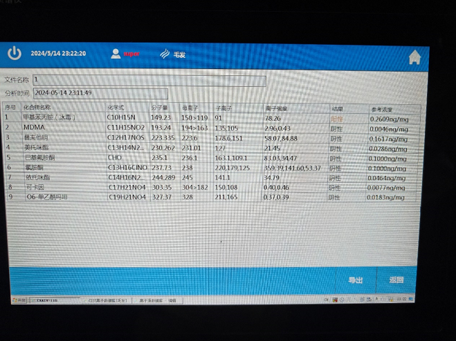 比武期間,我司小質(zhì)譜協(xié)助破獲涉毒案件7個(gè),抓捕嫌疑人9人。廣元地區(qū)共發(fā)現(xiàn)查獲吸毒人員3人,分別是依托咪酯1例、冰毒1例、海洛因1例,排除攜帶的可疑物質(zhì)約10份;瀘州地區(qū)共發(fā)現(xiàn)查獲吸毒人員6人,均為冰毒陽(yáng)性。