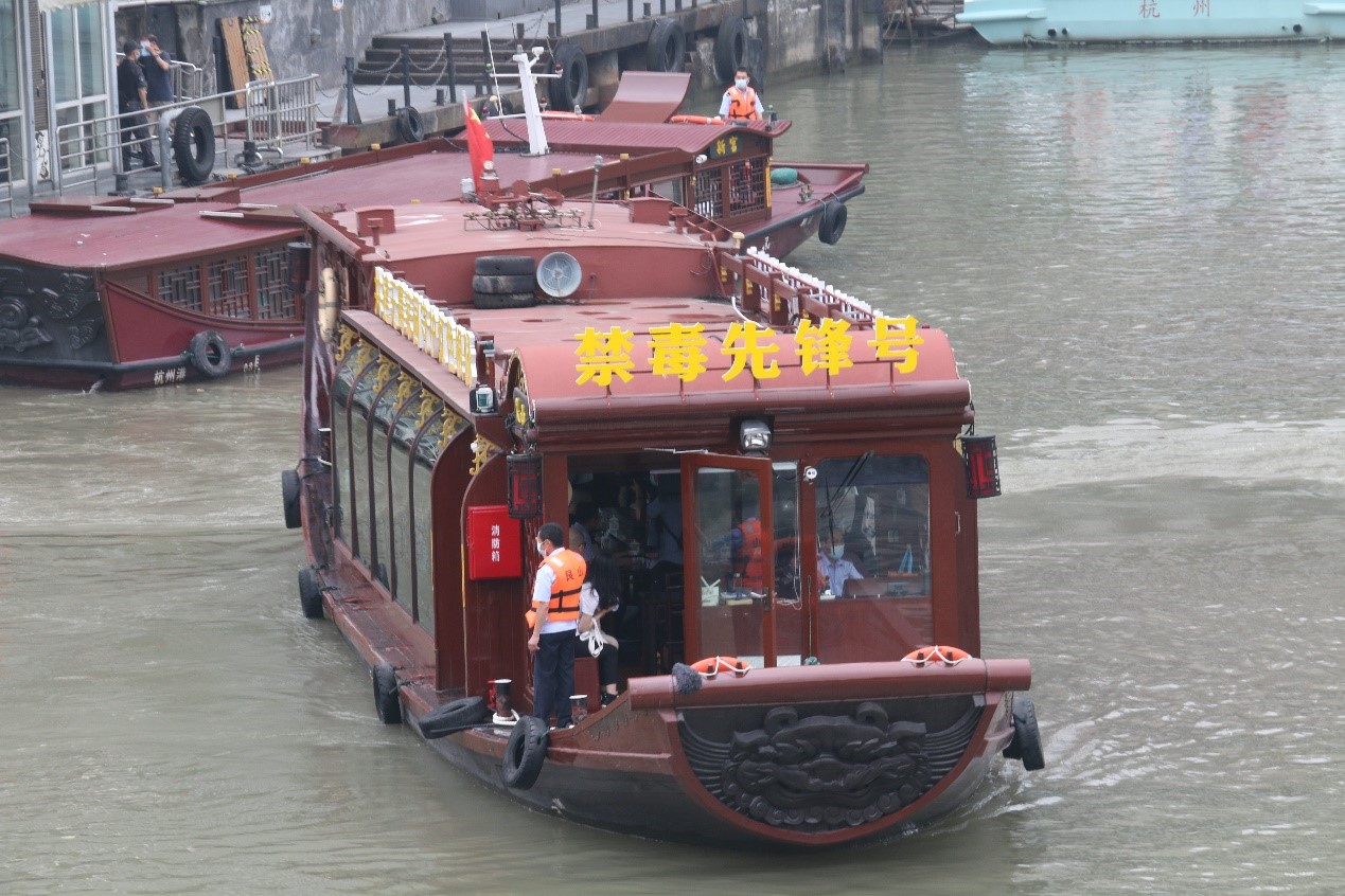 “禁毒先鋒號”主題船首航儀式在活動中同期舉行。“禁毒先鋒號”主題船作為禁毒教育、禁毒科普的流動展廳,向群眾宣傳吸毒危害、防范毒品、毒品法規、毒品檢測等多方面科學內容,營造了更為濃厚的禁毒宣傳教育新氛圍。