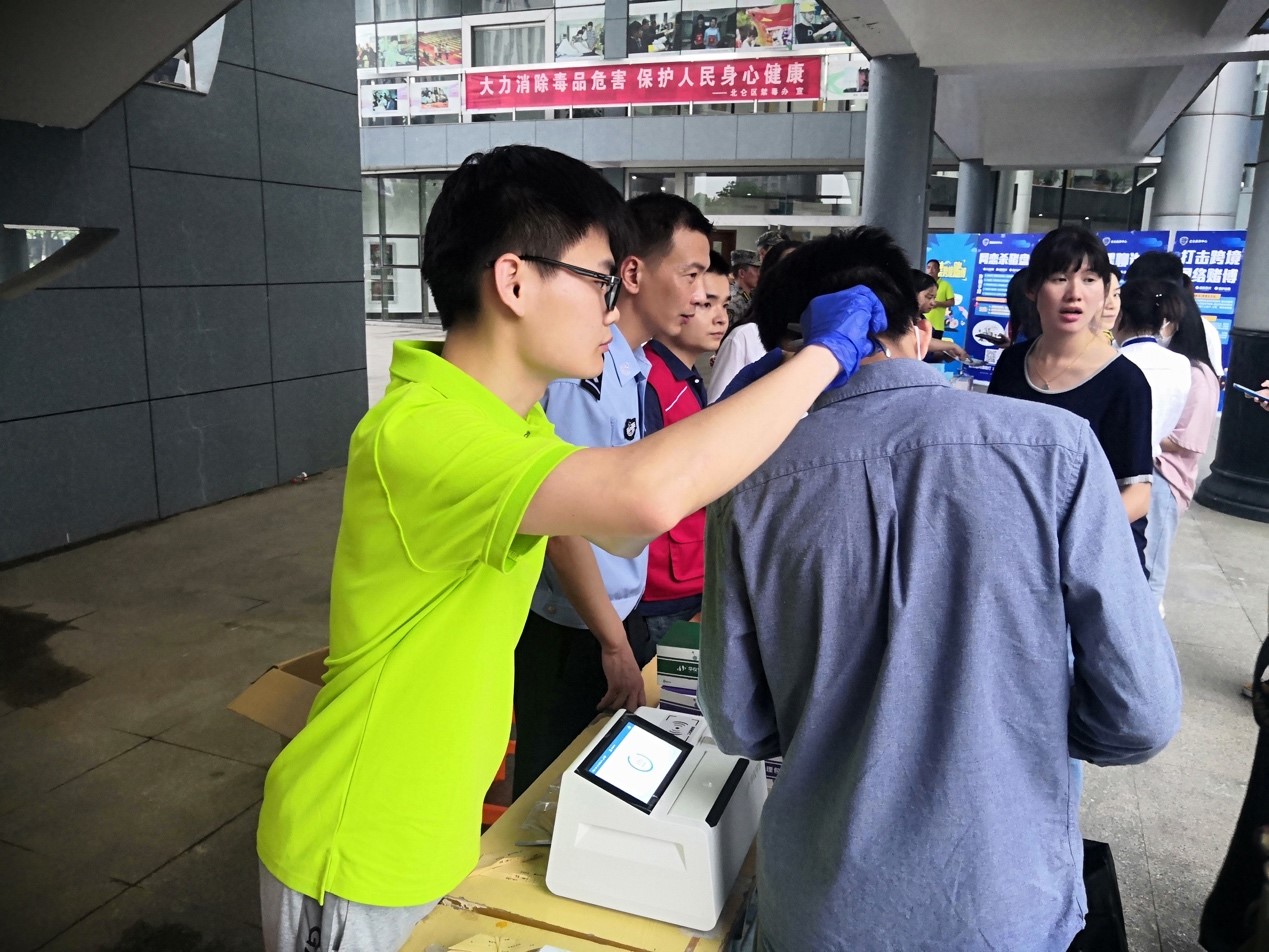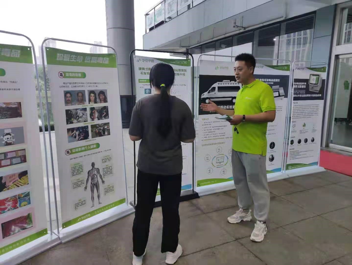 華儀寧創禁毒科普志愿者們帶來的禁毒“黑科技”也成為了本次活動的亮點。很多朋友參與到“毛發毒品檢測”體驗活動中,感受科技禁毒、智慧禁毒的魅力。北侖區禁毒大隊的周警官在看過華儀寧創的便攜式質譜儀、毛發毒品檢測一體機等產品演示后,感慨的說:“在禁毒工作新形勢下,科技是打擊毒品犯罪的最好武器。感謝你們把科技轉化為戰斗力。我們警民共同守衛無毒家園。”