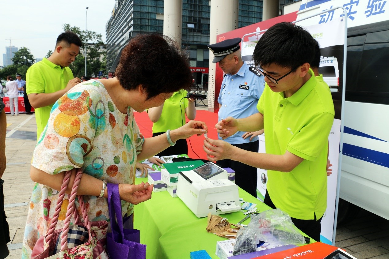 此外,華儀寧創(chuàng)禁毒科普志愿者們帶來的“禁毒黑科技”引發(fā)了圍觀和體驗大潮,現(xiàn)場熱鬧非凡。各位市民朋友聽說幾根頭發(fā)和一些唾液就能快速測出是否吸毒,而且還能自己操作,紛紛排隊親自試驗。當(dāng)看到自己的毛發(fā)、唾液樣本在禁毒黑科技上有“無毒品檢出”的顯示后,大家變得異常興奮,紛紛表示“我們是好市民,不吸毒,我們可以現(xiàn)場證明給你們看的”。