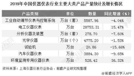 2、中國儀器儀表行業主要大類產品產量普遍下降